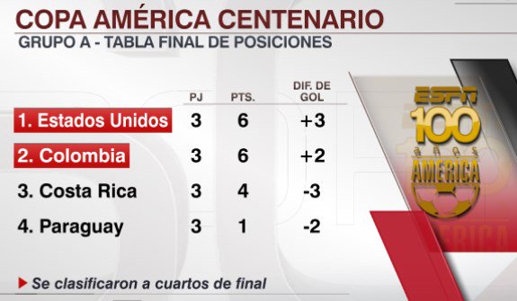 EEUU cierra su pase a cuartos de final como primera de grupo después de la derrota de Colombia ante Costa Rica por 2-3.