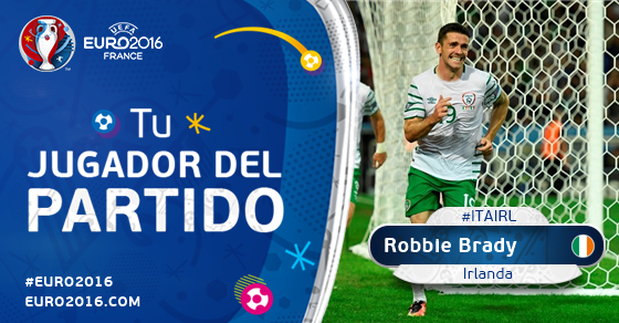 | Brady anotó el gol para que Irlanda se clasificara Con todos los partidos ya jugados en el grupo E, queda de la siguinete manera: ![]() Brady fue elegido hombre del partido fundamentalmente por el gol que le daba la victoria a Irlanda y le daba el pase a siguiente ronda. ![]() Estadísticas del partido Resumen del partido: |