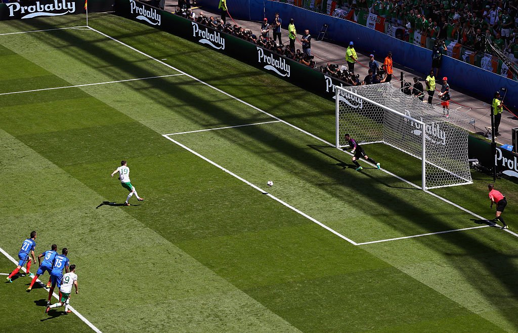 En el minuto 2 de la primera parte Pogba arrolló a Long dentro del área y provocó un penalti que transformaría en gol Brady. Francia se volcó al ataque, pero fue Irlanda la que mostró mejor fútbol y estuvo a punto de poner el segundo en el marcador. La segunda parte fue diferente, Irlanda estaba bien colocada en defensa pero no tenía paciencia en ataque por lo que perdían el balón enseguida y Francia volvía a atacar. La insistencia de Francia tuvo su recompensa, Griezmann que entró más en ataque en la segunda parte metió dos goles, uno de el 56' y otro en el 60' y además provocó la expulsión de Duffy y esa acción dejó sin posibilidades a Irlanda.